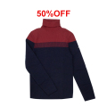 コレクションアイテムのデザインニット。コンパクトですっきりとしたシルエットのタートルネックニットは男女問わずお使いいただけます。フランスらしい配色と胸元のデザインが特徴のニットアイテムです。